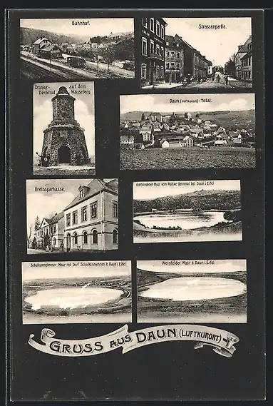 AK Daun, Bahnhof, Kreissparkasse, Totalansicht