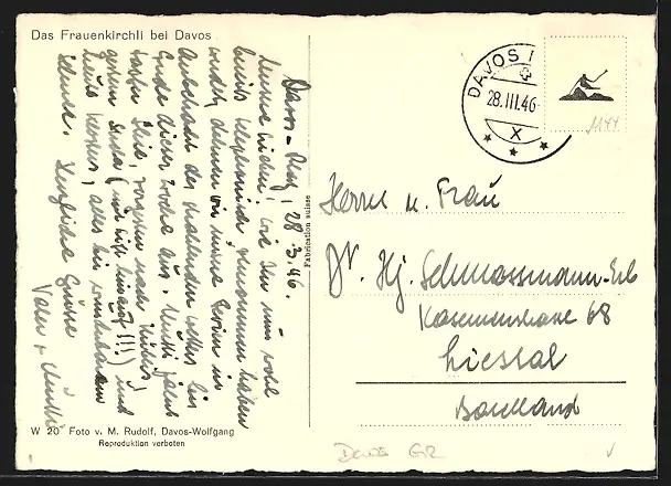 alte Ansichtskarte, gelaufen 1946, Briefmarke entfernt, guter Zustand