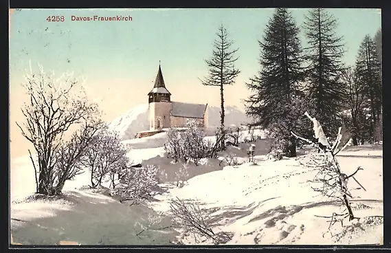 AK Davos-Frauenkirch, Kirche im Winterglanz