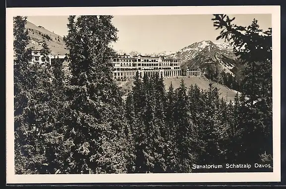 AK Davos, Sanatorium Schatzalp mit Bergspitze