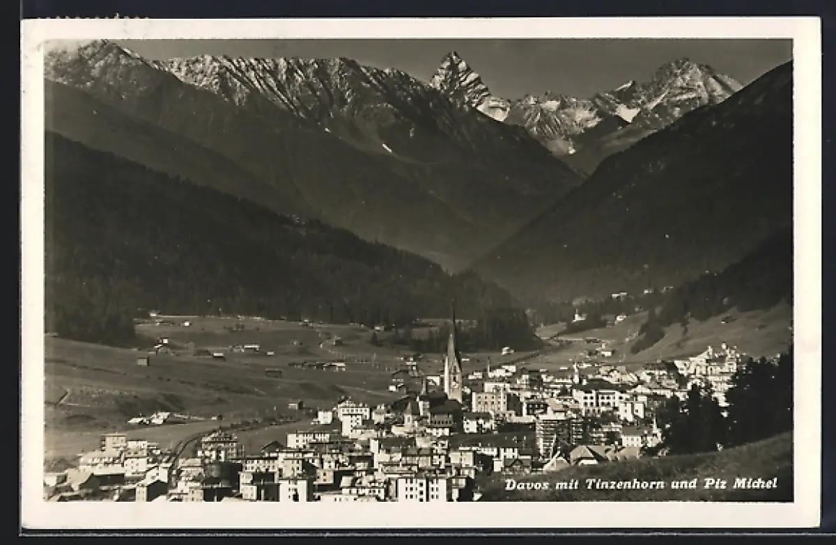 AK Davos, Teilansicht mit Tinzenhorn und Piz Michel