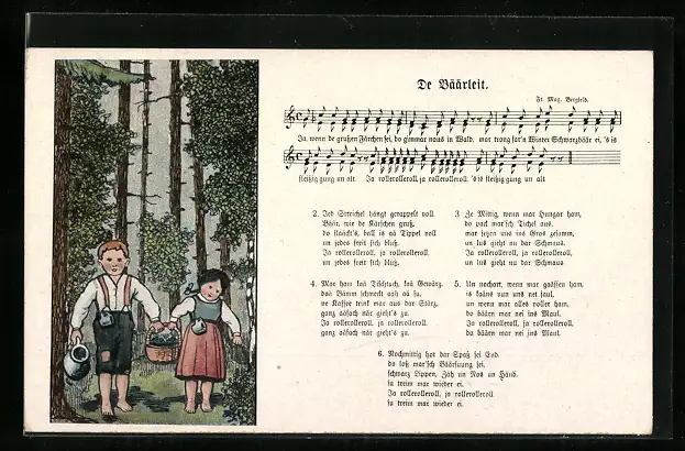 AK De Bäärleit, Lied mit Noten, Kinderpaar im Wald