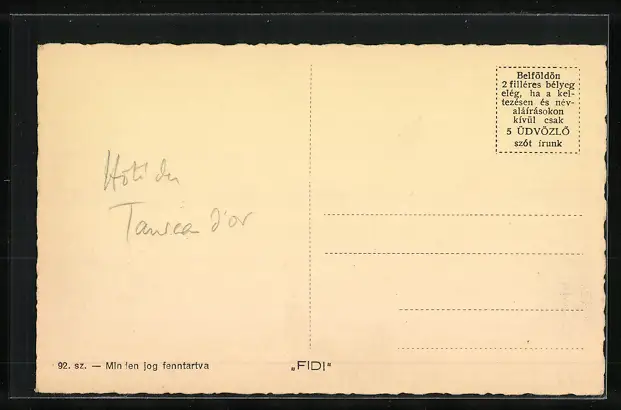 Personenbezogene Daten auf der Rückseite der Karte wurden durch blauen Textmarker unkenntlich gemacht. Die blauen Stellen sind auf die Vorderseite durchgeweicht und wirken sich negativ auf das Postkartenfoto aus