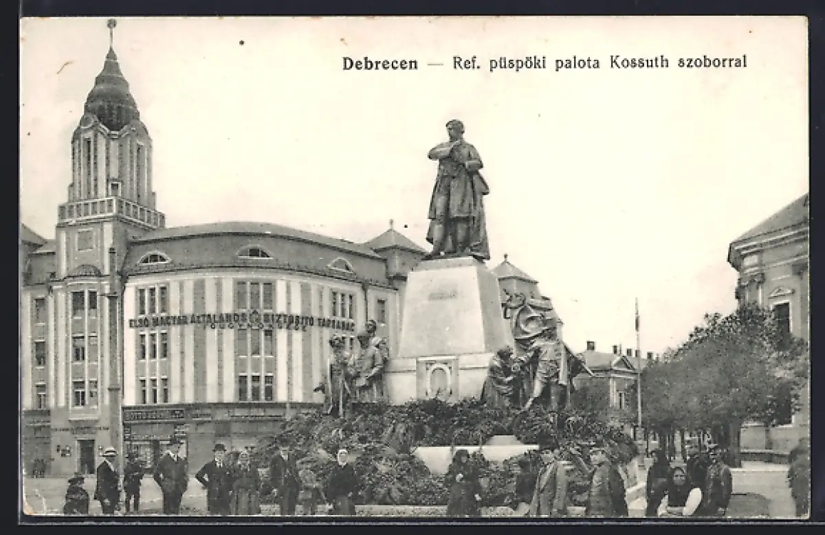 AK Debrecen, Ref. püspöki palota Kossuth szoborral