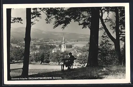 AK Dechantskirchen /Oststmk., Sitzbank mit Blick auf den Ort