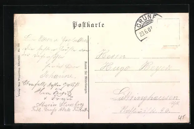 alte Ansichtskarte, gelaufen 1907, Briefmarke entfernt, rückseitig Oberflächenschaden, guter Zustand