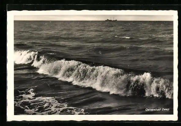 AK Deep, Wellen mit Schiff im Hintergrund