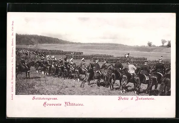 AK Defilé d`Infanterie, Soldaten der Schweizer Armee beim Manöver