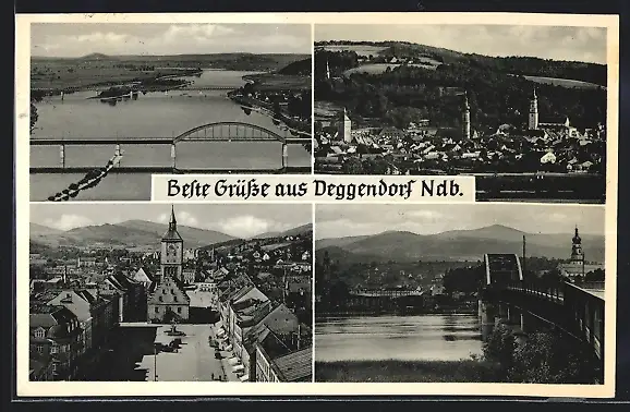 AK Deggendorf /Ndb., Brücke, Strassenpartie, Uferpartie
