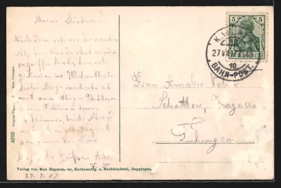 gelaufen 1907, rückseitig Oberflächenschaden, guter Zustand