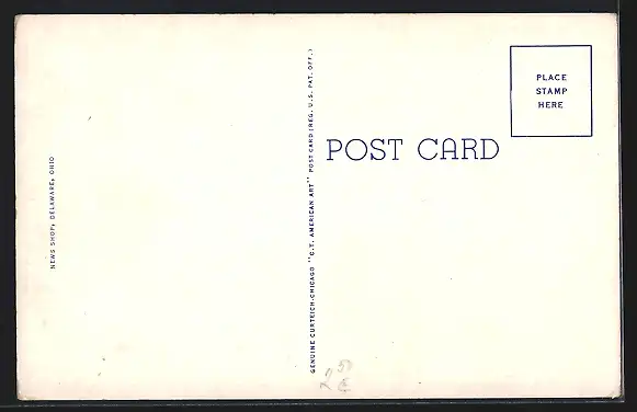 Personenbezogene Daten auf der Rückseite der Karte wurden durch blauen Textmarker unkenntlich gemacht. Die blauen Stellen sind auf die Vorderseite durchgeweicht und wirken sich negativ auf das Postkartenfoto aus