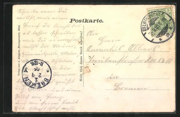 alte Ansichtskarte, gelaufen 1905, Stempelspur, guter Zustand