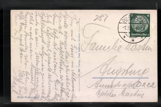 alte Ansichtskarte, gelaufen 1934, guter Zustand