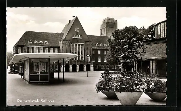 AK Delmenhorst, Rathaus mit Strassenpartie