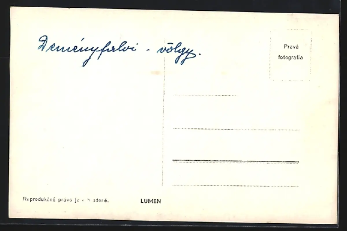 Personenbezogene Daten auf der Rückseite der Karte wurden durch blauen Textmarker unkenntlich gemacht. Die blauen Stellen sind auf die Vorderseite durchgeweicht und wirken sich negativ auf das Postkartenfoto aus