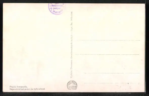 Personenbezogene Daten auf der Rückseite der Karte wurden durch blauen Textmarker unkenntlich gemacht. Die blauen Stellen sind auf die Vorderseite durchgeweicht und wirken sich negativ auf das Postkartenfoto aus