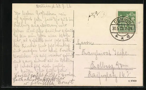 alte Ansichtskarte, gelaufen 1923, guter Zustand