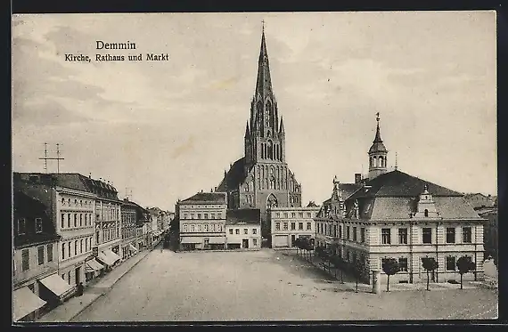 AK Demmin, Kirche, Rathaus und Markt