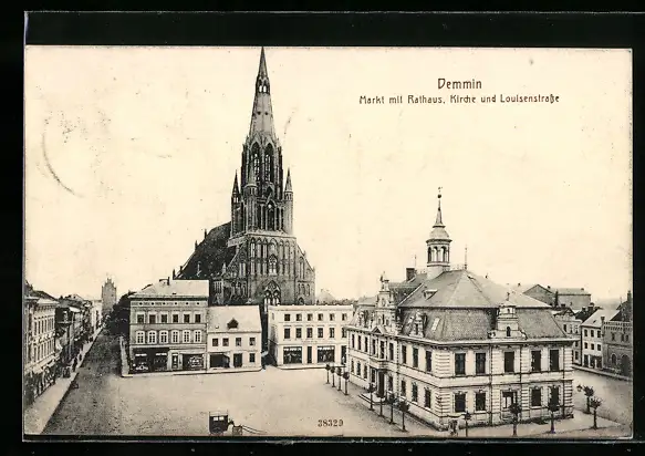 AK Demmin, Markt mit Rathaus, Kirche und Louisenstrasse