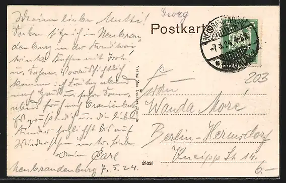 alte Ansichtskarte, gelaufen 1924, guter Zustand