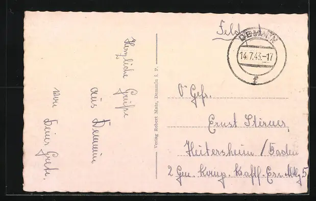 alte Ansichtskarte, gelaufen 1943, guter Zustand