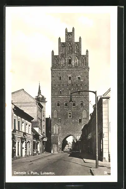 AK Demmin i. Pom., Strassenpartie am Luisentor