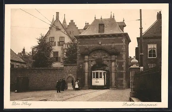 AK Den Haag, Strassenbahn fährt durch die Stadhouderspoort