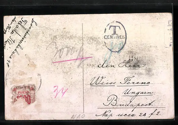 alte Ansichtskarte, gelaufen, Briefmarke tw. entfernt, rückseitig Oberflächenschaden, Stempelspur, guter Zustand