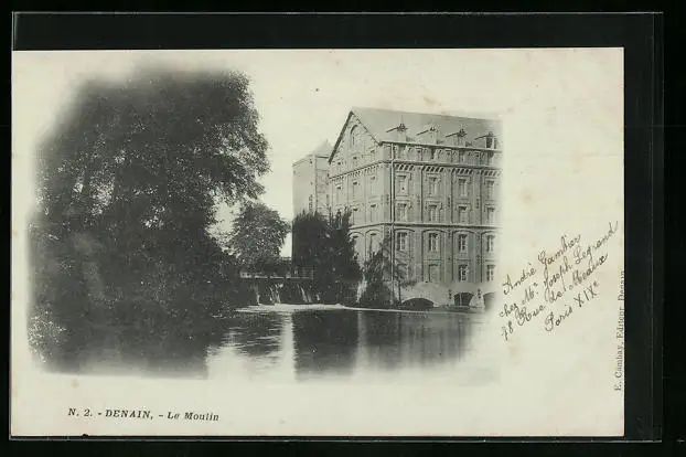 Personenbezogene Daten auf der Rückseite der Karte wurden durch blauen Textmarker unkenntlich gemacht. Die blauen Stellen sind auf die Vorderseite durchgeweicht und wirken sich negativ auf das Postkartenfoto aus