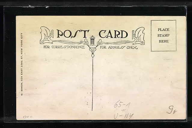 Personenbezogene Daten auf der Rückseite der Karte wurden durch blauen Textmarker unkenntlich gemacht. Die blauen Stellen sind auf die Vorderseite durchgeweicht und wirken sich negativ auf das Postkartenfoto aus