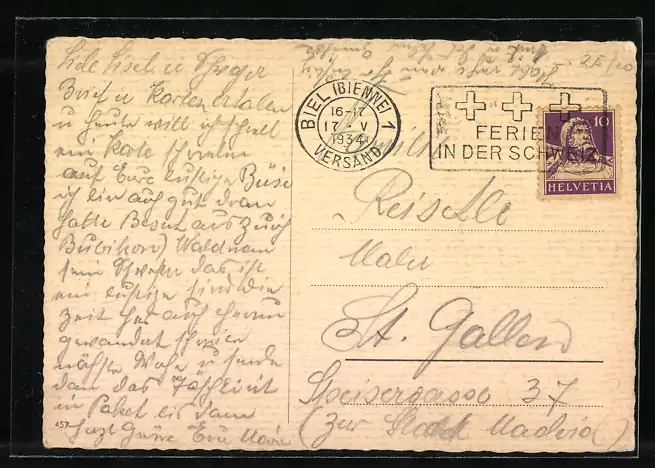gelaufen 1934, Eckknick unten li., guter Zustand