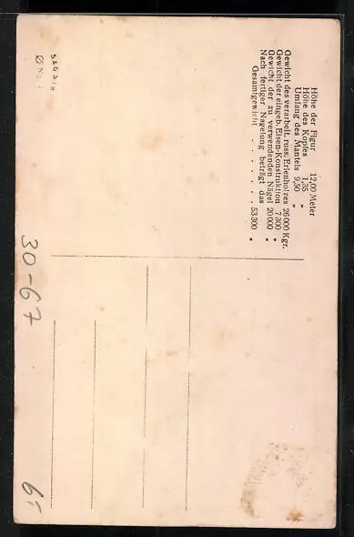 Personenbezogene Daten auf der Rückseite der Karte wurden durch blauen Textmarker unkenntlich gemacht. Die blauen Stellen sind auf die Vorderseite durchgeweicht und wirken sich negativ auf das Postkartenfoto aus