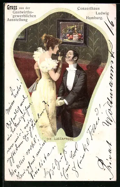 AK Der Feinschmecker im Gespräch mit einer hübschen Dame, Allegorie