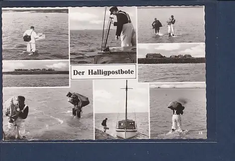 AK Der Halligpostbote 8.Ansichten, nicht gelaufen von ca. 1967, Rückseite Beschriftet.