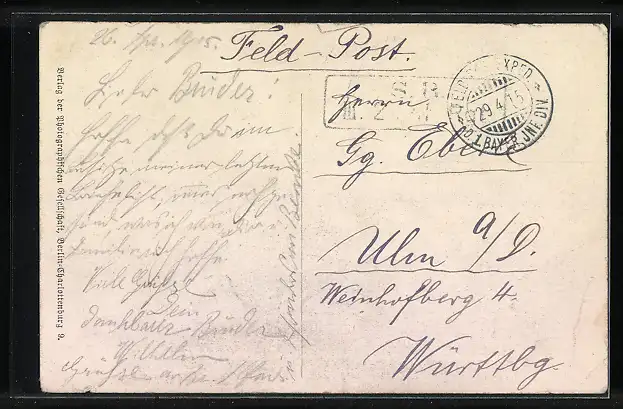 alte Ansichtskarte, gelaufen 1915, Eckknicke unten, Bugspur li. unten, guter Zustand