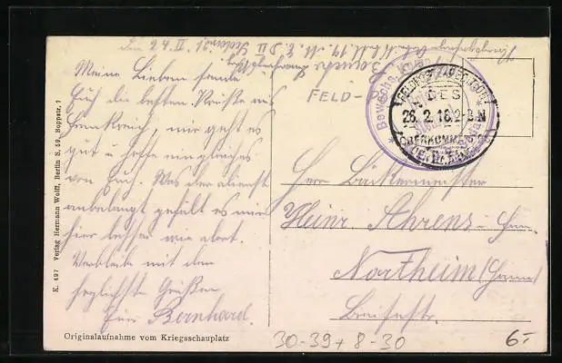alte Ansichtskarte, gelaufen 1916, Eckknick re. unten, guter Zustand