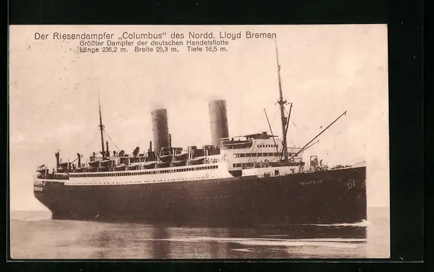 AK Der Riesendampfer Columbus des Nordd. Lloyd Bremen
