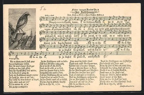 AK Der Rutschwanz, Lied in erzgebirgischer Mundart mit Noten
