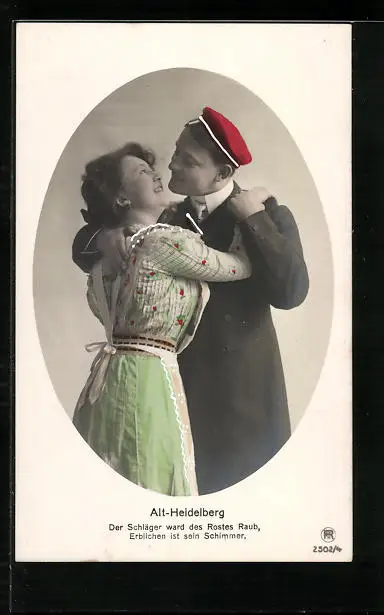 AK Der Schläger ward des Rostes Raub..., Student mit Geliebter, Alt-Heidelberg