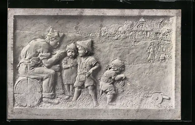 AK Der Spatz, Schweizer Soldat mit Kindern