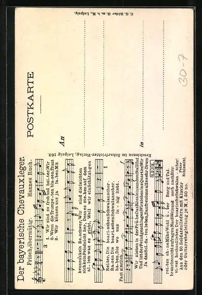 AK Der bayerische Chevauxleger in Uniform, Lied mit Noten