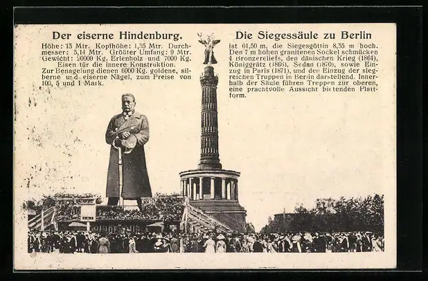 AK Der eiserne Hindenburg, Die Siegessäule zu Berlin