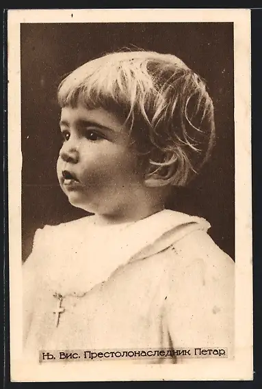 AK Der kleine Petar von Serbien mit Kreuzkette