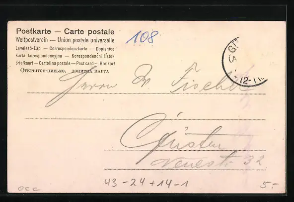 alte Ansichtskarte, gelaufen, Briefmarke entfernt, guter Zustand