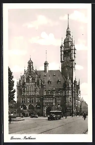 AK Dessau, Bus vor dem Rathaus