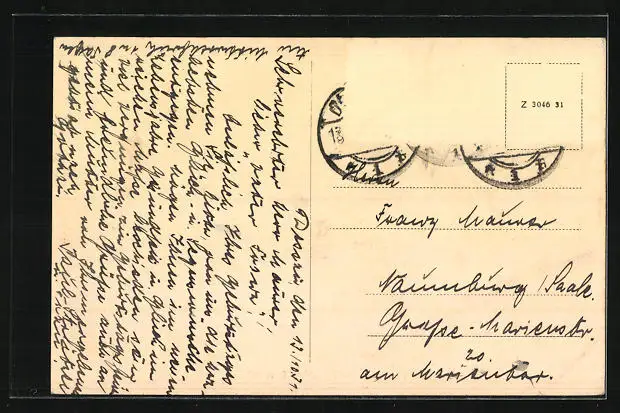 gelaufen 1931, Briefmarke entfernt, Stempelspur, Eckknick links unten, guter Zustand