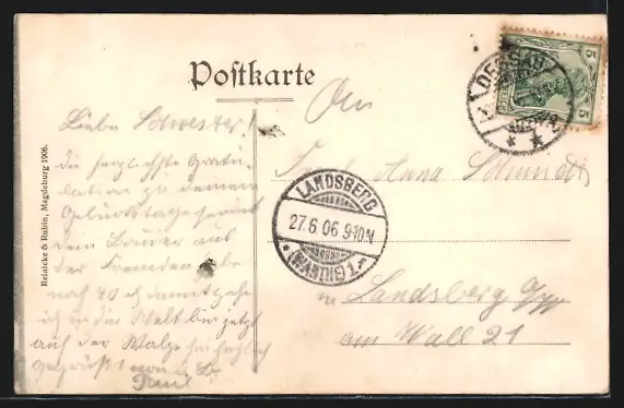 alte Ansichtskarte, gelaufen 1906, guter Zustand
