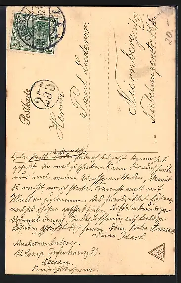 alte Ansichtskarte, gelaufen 1913, rückseitig Klebe- und Papierreste, guter Zustand