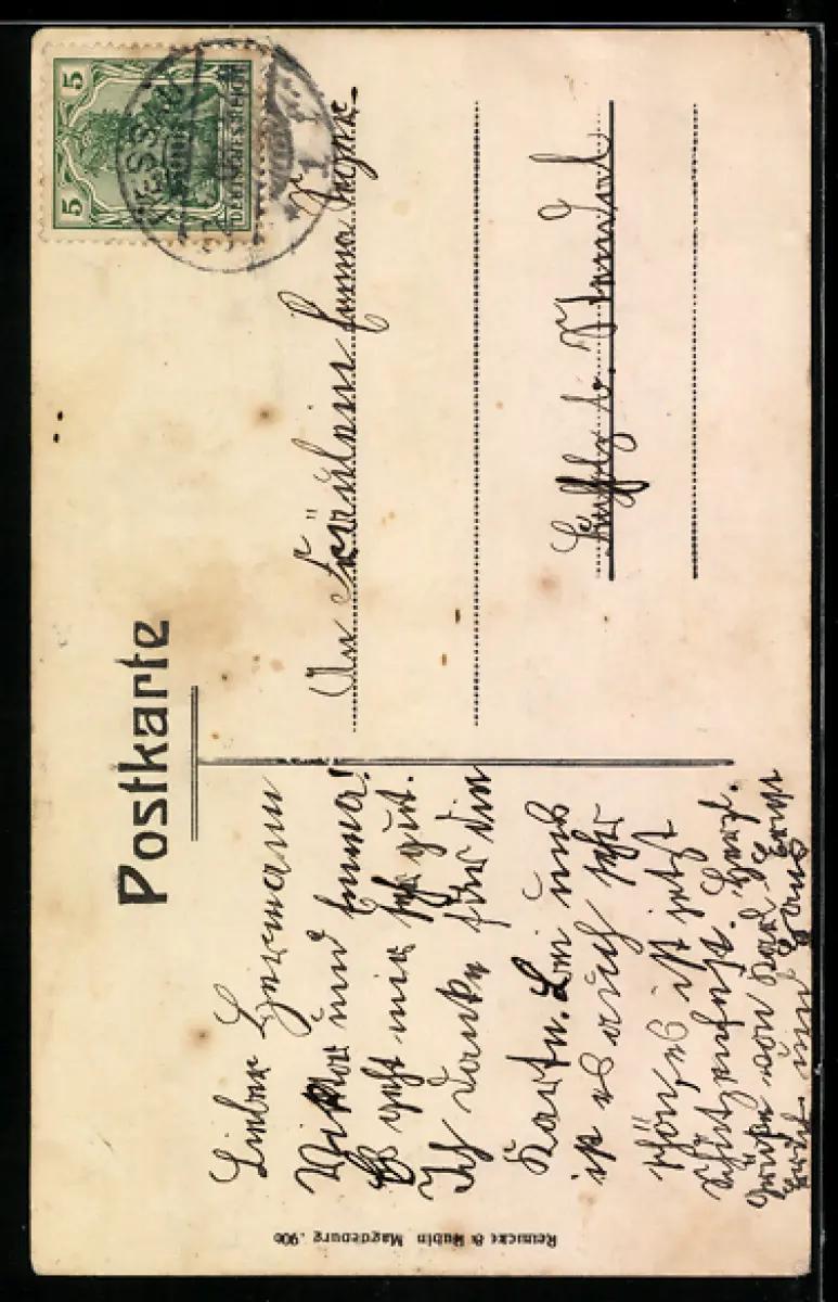 alte Ansichtskarte, gelaufen 1908, Eckknick li. oben, guter Zustand