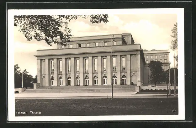 AK Dessau, Strassenpartie mit Theater